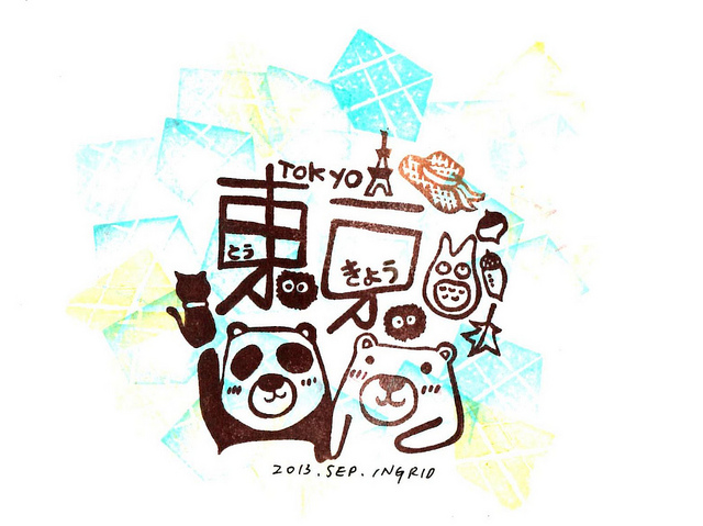 最後同場加映這張由東京雜貨旅行團團長覓熊親手刻印的明信片,看出來了嗎?有東京鐵塔、吉卜力主角、秋天的楓葉和橡實等元素在裡面唷~