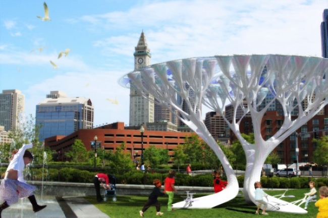 TREEPODS人造光合樹本身可以自行過濾二氧化碳,並釋放新鮮空氣,還能藉由太陽能獲得多餘能量,在夜間時自行發光點亮四周。