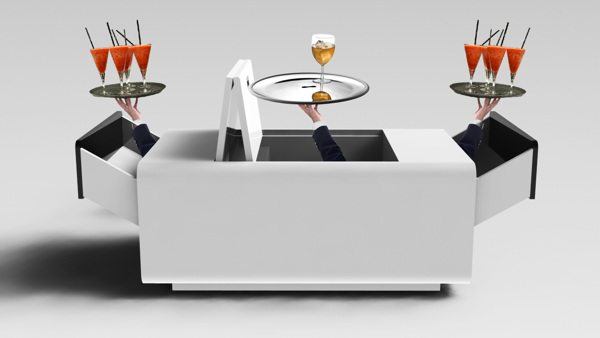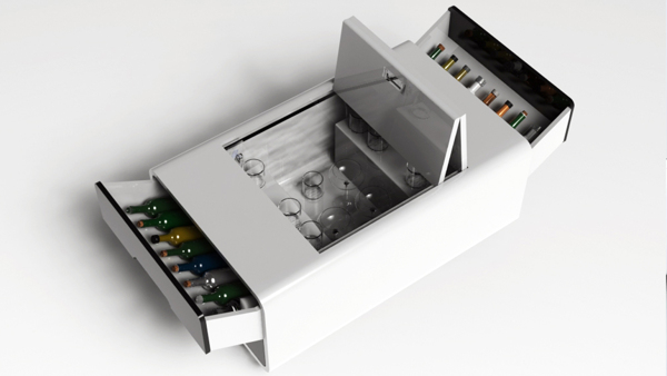 在自家擁有私人酒吧是許多人的夢想,但受限於空間、裝潢等限制,不容易達成。因此當想找朋友聊天喝一杯時,只能被侷限在外的酒吧、酒館。有位設計師 Eduardo Oliveira創造一種新的社交模式,創作一個如咖啡桌的大小的Baco Bar,當親友到訪時,在自家客廳原地把Baco Bar展開,不需出外到酒吧消費,整個客廳就是自家小酒館。
