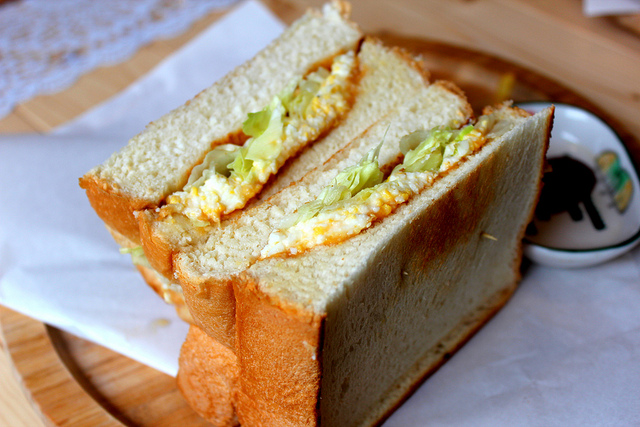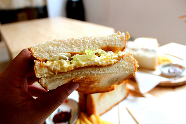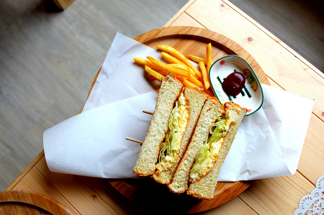 另外點的是花生醬蛋沙拉口味的「疊疊燒」,名字取的特別,其實就是用厚片吐司作成的烤三明治,味道還不錯。只是擺盤上是平放的,沒有做出疊高高的感覺。