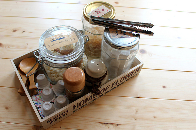 大叔很欣賞這個調味小木盒,裡面有方糖、咖啡冰糖、棉花糖、奶球等,替客人設想周到的這份心意很棒。