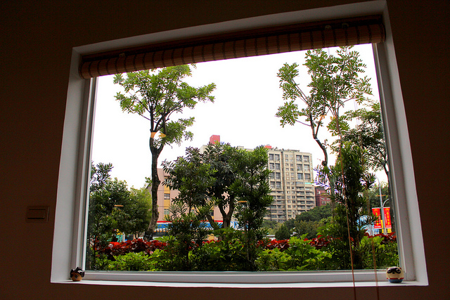 由於旁邊是公園沒有遮蔽物,室內採光極好,窗景望出去很悠閒。