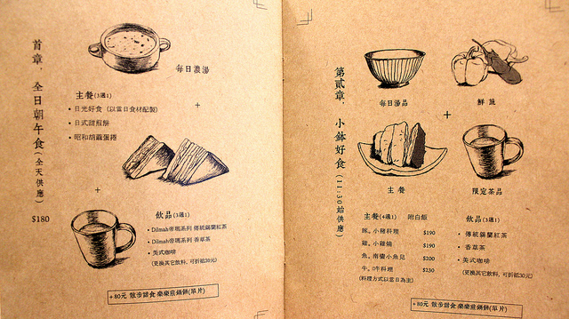 晴空樹的MENU可真是找到高手設計,從插圖到字體甚至是紙質的選用,再次加深這日式小清新的印象,以小缽好食和散步甜食為主力,茶品也選用已經在台灣開設分店的LUPICIA綠碧紅茶苑系列產品,把大家常忽略掉的細節都徹底照顧到了。