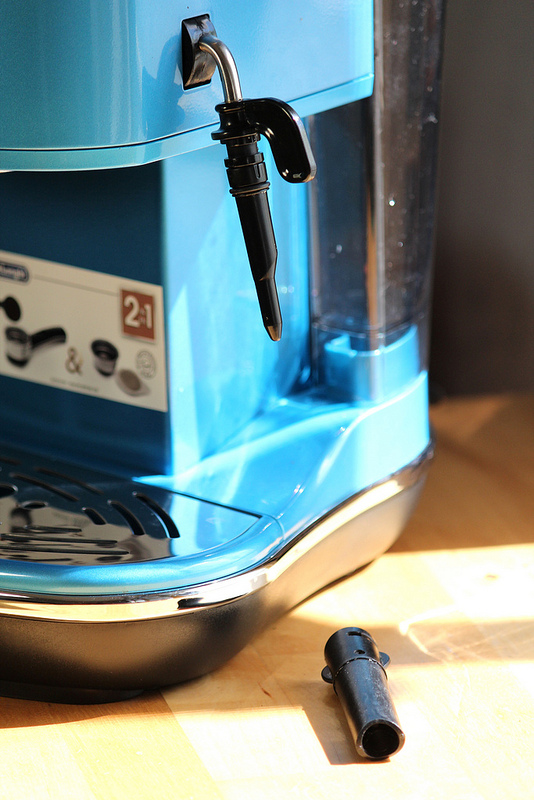 目前這台 DeLonghi 義式咖啡機有黑色、藍色兩款可以選擇,在外型上幾乎可以說是無可挑剔,設計感大大的取勝!對於新手來說,最大的困難應該在於如何填壓咖啡粉以及扣上把手這兩點,其實這台咖啡機的操作過程跟營業用的機器差不多,購買咖啡豆的時候順便請教一下咖啡館老闆,應該就可以解決問題。至於發泡牛奶的訣竅就要靠自己多練習,找到個角度就可以讓鮮奶發起來,記得控制好溫度別加熱過頭,這樣奶泡反而會破掉。