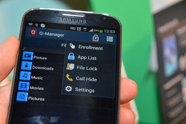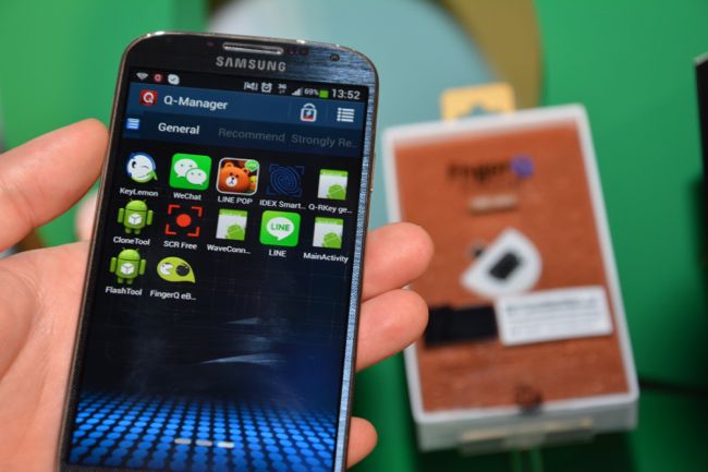 FingerQ 共能夠記憶九指指紋,來為使用者手機中所有的應用程式及檔案進行加密管理。