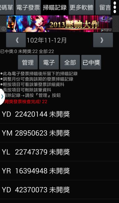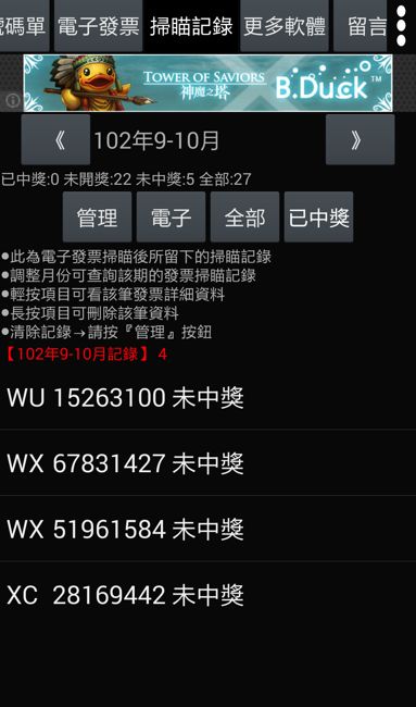 這套app不單有提供”對獎機”、”號碼單”開獎號碼讓我們比對,特別的地方在於多了管理發票的功能。