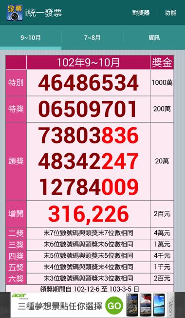 推薦對象: 不止關注統一發票,有大樂透、威力彩、五三九等等對獎需要兩項以上的朋友。