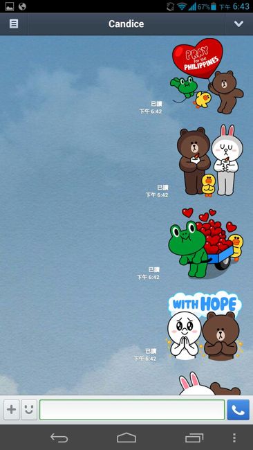 在菲律賓遭受到海燕颱風的侵襲重創後,來自全球的慰問與救援不斷。而LINE也率領旗下主人翁們在Android平台推出一系列關懷貼圖。
