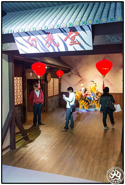 回到水虎這區分別裡外兩區,外邊主要的場區是仿宋客棧櫃台的販賣部,但因為水「虎」傳所屬的宋朝是個盜賊四起的年代,最為有名的便為梁山108條好漢,是以不管是櫃台內外、牆上都有著許多飛箭、飛刀,一個不小心便會被射的滿身窟癃。