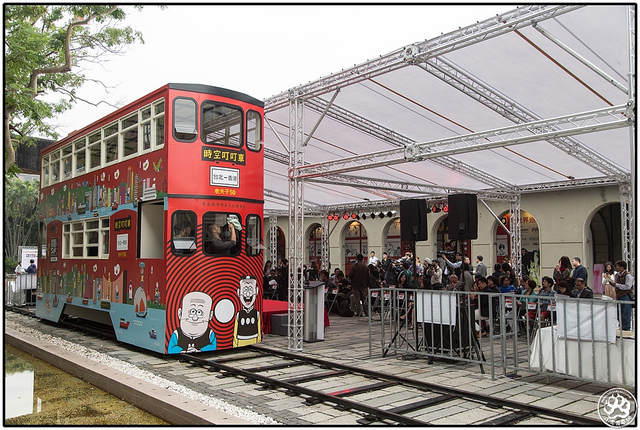 原來這個展搭配了香港最具代表性的交通工具「叮叮車」,還刻意在松菸倉庫到誠品間架了一條臨時鐵軌,而且↓。