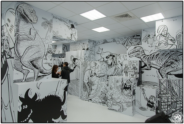 三.跳進框中框(Into The Frames) 這一區是小虎最喜歡的一區,在立體、時凸時凹的漫畫空間裡,一邊觀看老夫子、一邊找尋兒時的歡笑,有那麼一種陷入漫畫中的錯覺。