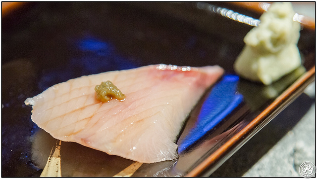 這片鰤魚雖然切的有一點厚度但絕絕對對是我吃過最化口、最甜的一片,送入嘴裡半秒即化好吃的不得了,加上一抹輕輕的柚子醬偷偷、轉換一、兩秒的苦澀香,很令人感動的一片生魚片。