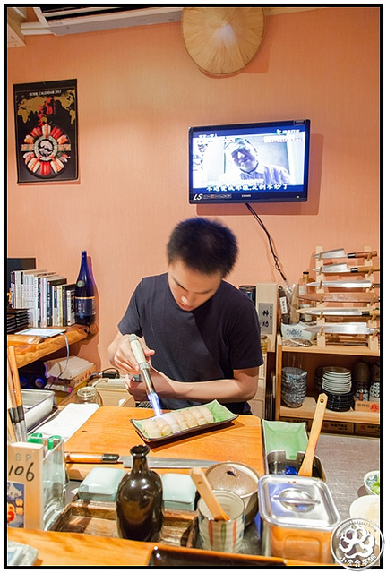 「坐著做」壽司店非常的小,勉強的擠一擠也才能坐八個人,但不知道為什麼我就是覺得很有fu、很有深夜食堂那種小店的fu,當然也很有「瞞著爹」的fu。