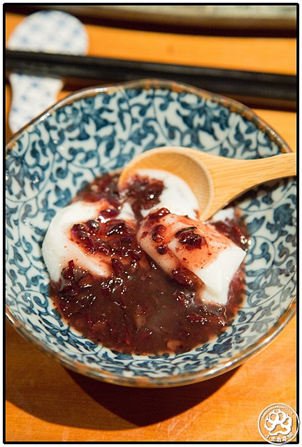 最後當然也有偏日式的甜點,紫米冰淇淋麻吉,紫米本身沒有什麼甜度,其甜完全來自麻吉中的冰淇淋,因為紫米是熱的、麻吉是冰的,紫米是綿的、麻吉是Q的、冰淇淋是黏的,雖然味道、口感都不難想像,但仍是好吃無誤,最少是個很完美的結局。
