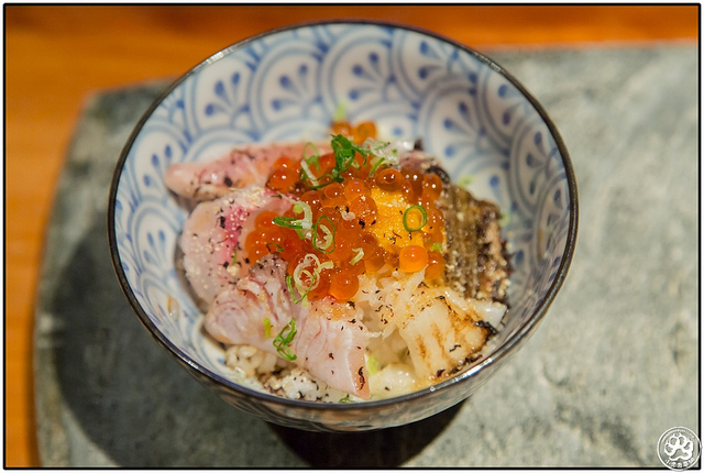 當中除了這一小沱馬糞海膽外還有剛剛的用過的紅甘、鰤魚、比目魚緣側、星鰻,當然也有散壽司少不了的鮭魚卵,加上醋酸度剛好、讓這一小碗吃來超超感動的,除了【忠孝復興站】瞞著爹三店我再也沒吃過更美味的散壽司了。