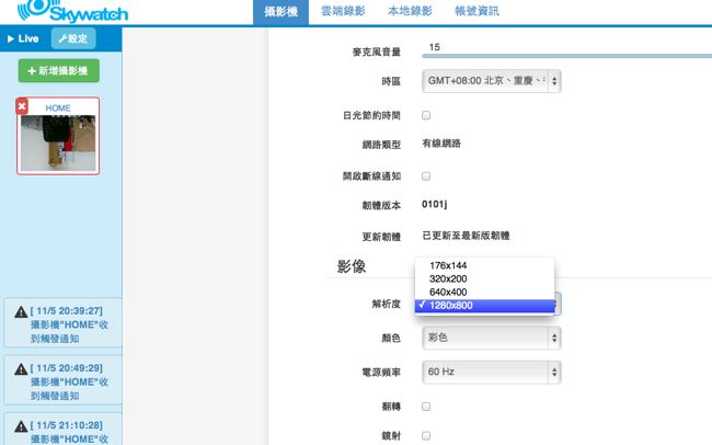 設定的部分,我們可以設定時間、想要錄影存放的位置、影像解析度…等等。