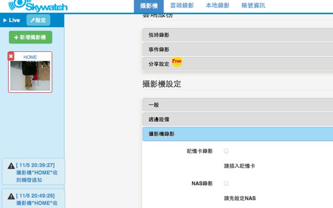 這邊順便介紹一下,這款ProCam有分為雲端儲存與本地儲存兩種選擇,而顧名思義,雲端儲存就是透過帳號將影片儲存在雲端空間裡; 本地儲存則有透過 microSD卡與NAS兩種方式來存放檔案。