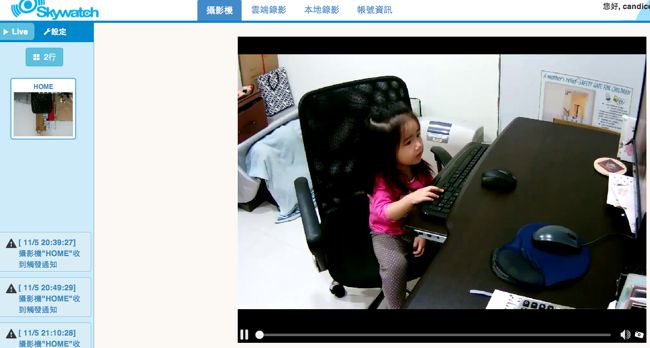 這都可以讓使用者依照自己的需求來選擇,當然,如果是要用作監控系統,這邊建議還是利用雲端或是microSD 卡來循環儲存,因為目的就是要那個”調影片”的蒐證動作。但如果只是想隨時跟家裡寶貝零距離的活動參與,除了自動循環錄影以外,也可以自己手動利用web browser右下角相機圖示的快照功能來擷取圖片。如果要看到錄影檔案的話,直接從記憶卡或是雲端上,就可以依據時間來調閱影片,除了可以線上即時觀看外,還可以下載剪輯使用,非常方便。在雲端錄影部分更為方便,直接利用手機APP就可以調閱觀看影片並下載。而Skywatch的恆時錄影可以保留30天內24小時所有的錄影檔,不會流失每一分每一秒的珍貴畫面。