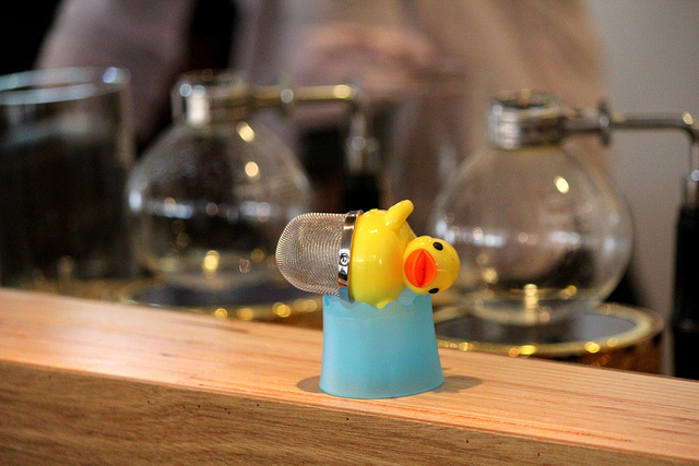 被稱為「女王」的芒果咖啡經營者之一王琴理,其實是黃色小鴨的狂熱粉絲,她所蒐集的小鴨相關產品,幾乎快要塞滿整間咖啡館。所以,這款黃色小鴨沖茶器就順理成章的在芒果咖啡館店內販賣。