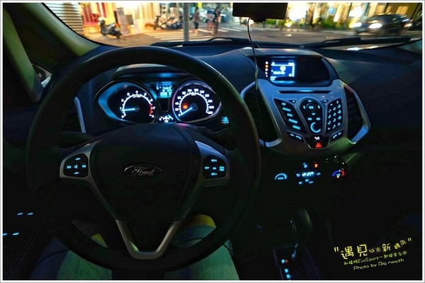 ▲一整天的行程直到晚上,夜晚開啟夜燈的福特EcoSport就像是車裡的小夜景一樣,把車內空間點亮意外迷人~