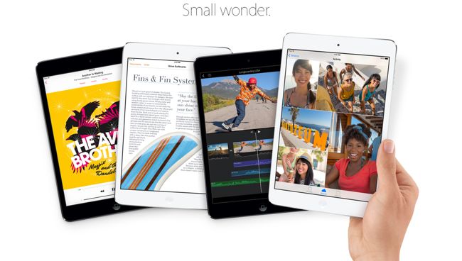 iPad Air 與 iPad mini Retina除了螢幕尺寸分別為9.7吋及7.9吋,兩者皆使用A7處理器、擁有16/32/64/128 GB容量選擇、Retina螢幕、FaceTime HD鏡頭、支援1080p HD錄影。