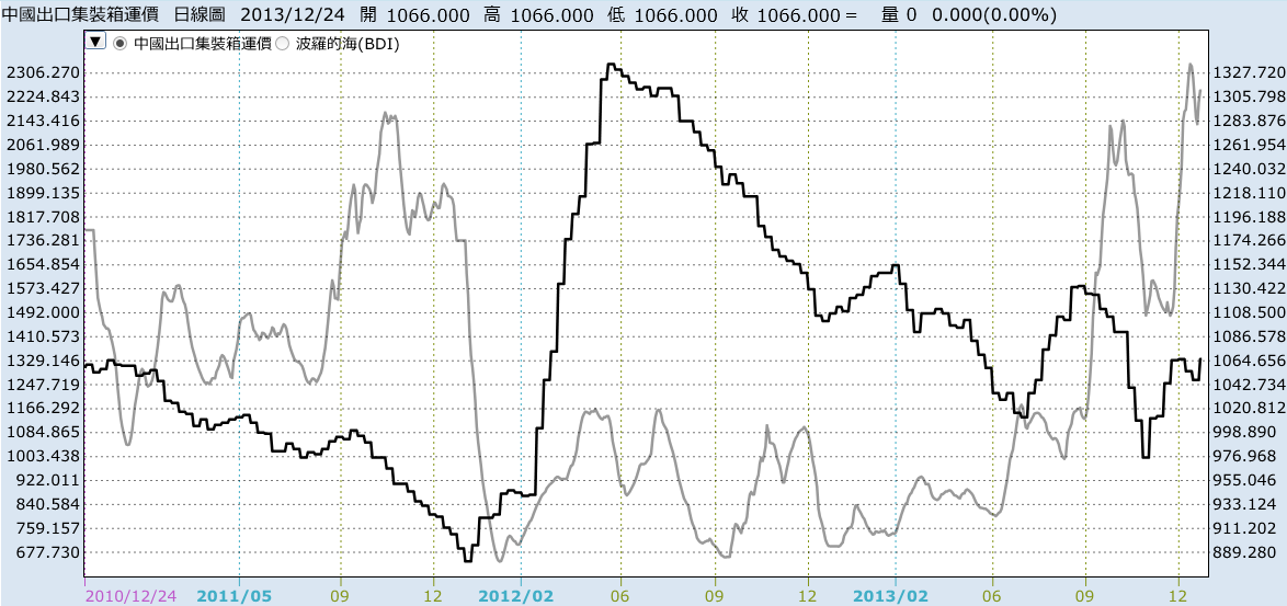 近期BDI指數持續創新高,擺脫2012年以來低迷的走勢,帶動國內、外散裝航運股大漲。而中國11月出口金額大幅優於預期,年成長率達12.7%,貿易順差也創下五年新高,帶動中國出口集裝箱指數出現築底跡象。