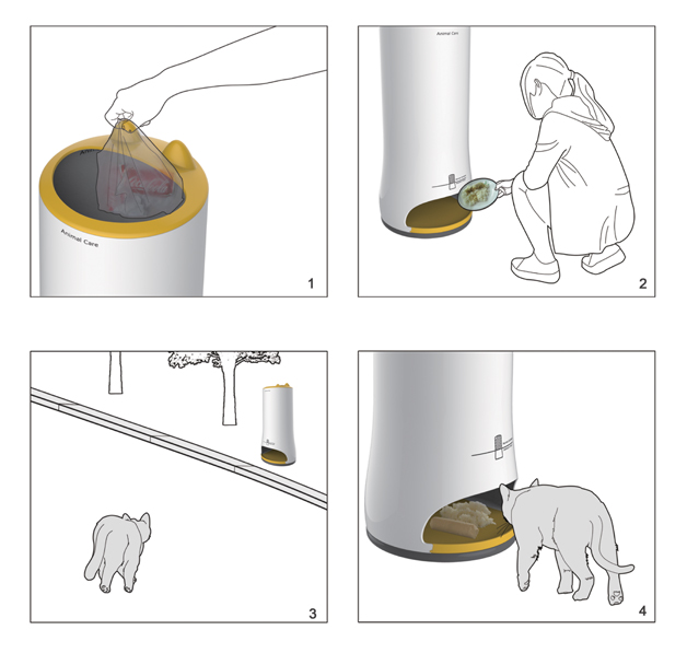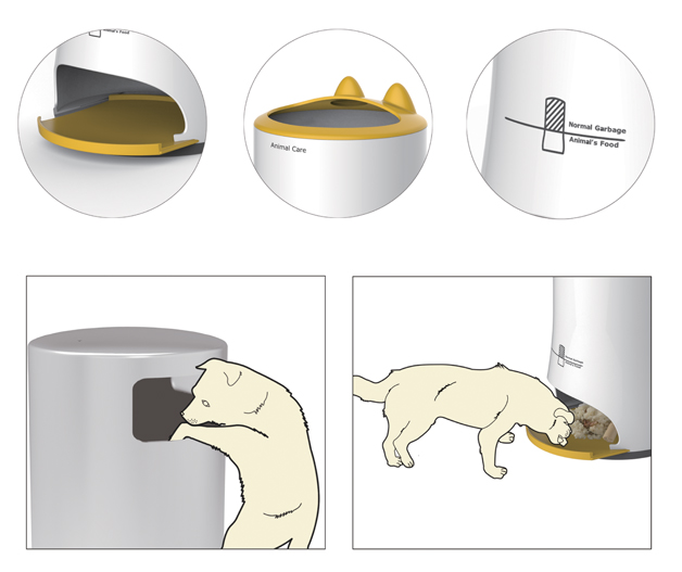 Animal Friendly Trash Can是幾位同情流浪動物的教授們看到許多被遺棄的寵物們失去謀生能力,病死、餓死在街頭,提供一個垃圾桶,讓人將家中吃剩的食物放在這個垃圾桶處理,垃圾桶的上方是一般的垃圾桶,供棄置廢棄物,隔出一個空間放置托盤。人們可以先將剩餘的食物倒在垃圾桶下方的托盤,再將不要的容器丟棄在上方的垃圾桶。