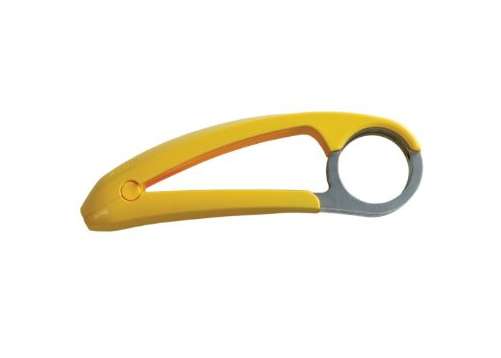 Chef’n Bananza Banana Slicer 香蕉切片機長得很像開罐器,外型有弧度便於握取施加壓力。圓形孔用以用香蕉穿過。