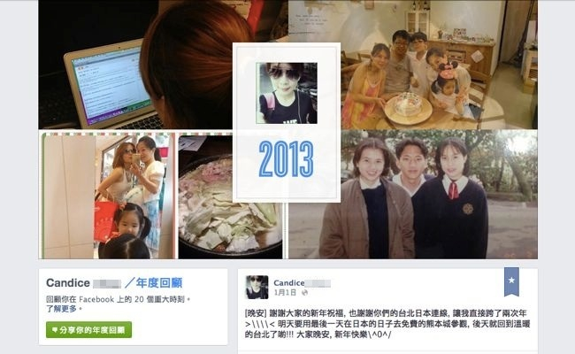 雖然不知道它挑選的標準是什麼,不過你可以看到許多好友的照片也是用輪播的方式出現在封頭上。右下方同樣是2013的心情整理塗鴉牆,只是從自己的換成好友們的心情日記。