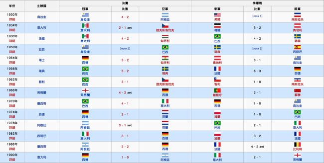 以下為世界盃足球賽歷屆主辦國與冠軍等資料也提供給大家先回顧一下。