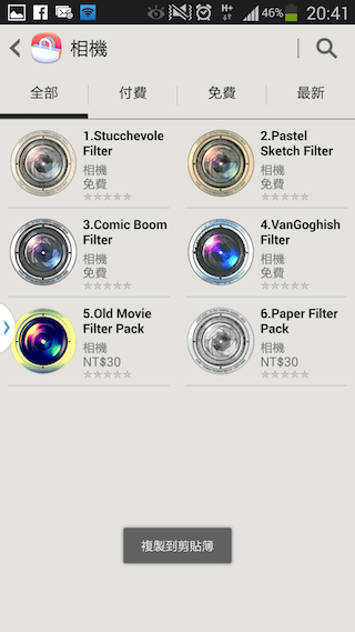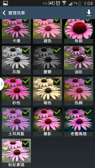 app 內提供了付費與免費的更多濾鏡可供下載,喜歡建立個人風格或是與眾不同的朋友除了內建濾鏡之外都能在這邊找到自己喜歡的濾鏡種類,當然 Samsung 也會持續更新更多不同的濾鏡供使用者下載。