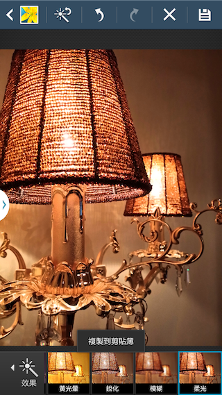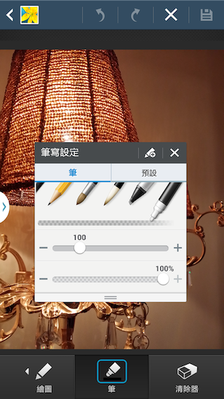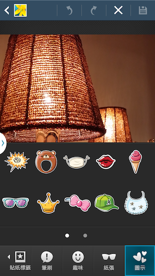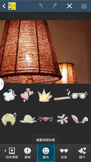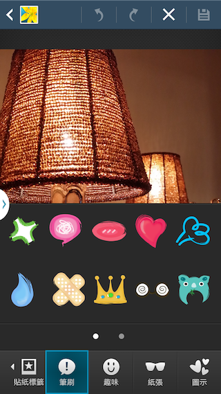 GALAXY J 內建的編修功能,除了簡單的基礎調校之外,更有豐富趣味的貼圖與筆刷功能。