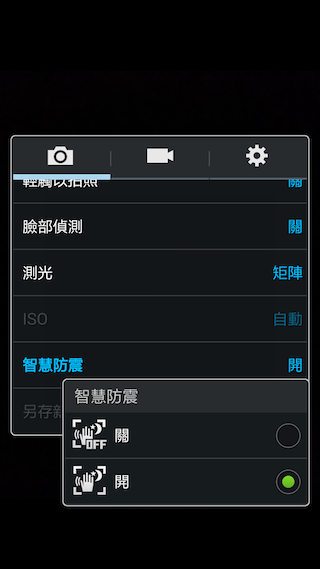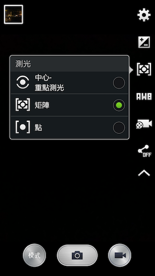 好不好用的相機,看他的快捷設置就可略知一二,GALAXY J 提供了相當方便且等同於相機的概念,不單單可以調整EV值,甚至也能調整測光模式。