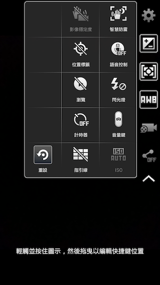 最令筆者驚喜的就是這些快捷鍵都能透過自定義來設定,讓使用者能找出最適合自己的方式來設定,不僅提升了使用內建相機的使用者感受,也加快了拍攝的參數調整。
