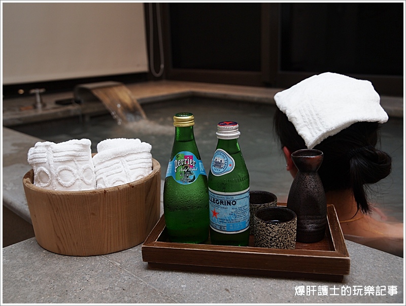 回到房間後開心的泡湯,泡完後搭配飯店給的梅酒及氣泡水,真是享受。