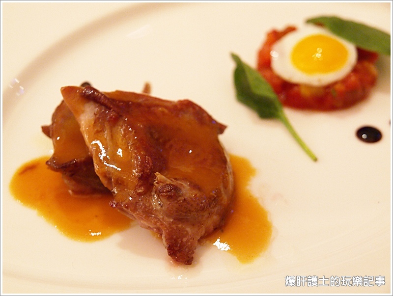 單吃鵪鶉還是會有一種特別的野味,搭上一旁的半熟鵪鶉蛋及梅子口味的番茄,爽口又開胃!