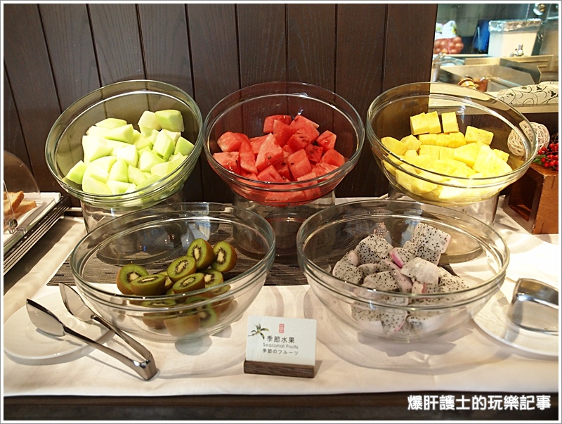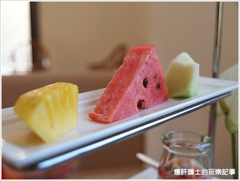 上層是水果,服務人員介紹完畢後,建議我們從下層鹹的吃起。