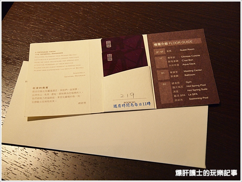 這一套茶組,也是目前住宿看到最高級的,一次給你三種台灣茗茶,卡片裡的”滌塵”也是飯店老闆要傳達給顧客的心意,進來這裡就是要好好放鬆的睡覺、泡湯,所以不會像商務旅館有很多插座。