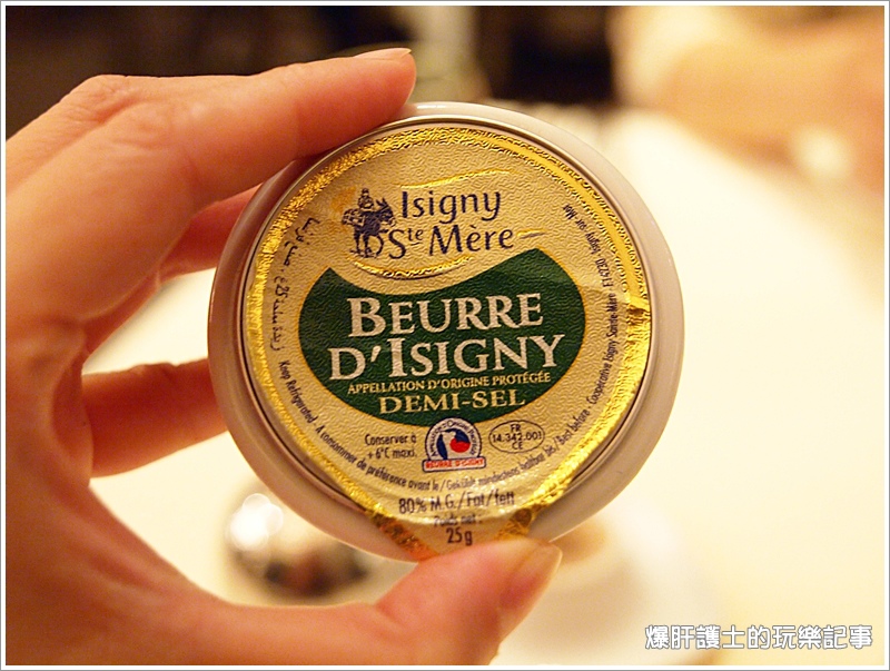 稍後送上法式麵包及手工木炭雜糧麵包,搭配鴨肉醬及法國高級奶油,服務人員送上麵包後,將奶油撕開並解說後離開,麵包一硬一軟,奶油香而不膩又不會死鹹,鴨肉醬紅蔥味重像極了中式的肉燥醬,搭起來好美味。