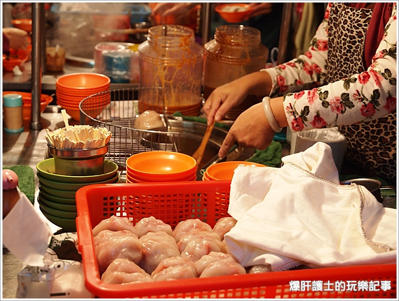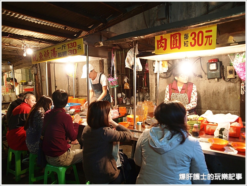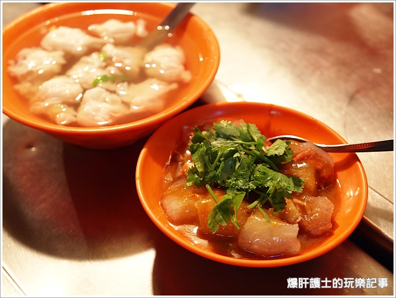 肉圓一份$30,是紅糟口味的,肉圓皮Q老闆起鍋壓掉大部分的油,所以吃起來並不會很油膩,裡頭的筍塊與肉的份量給的多,不過肉的質地比較偏硬了些。這兩家的老闆簡直是串通好似的,吃個肉圓會覺得口乾,但湯如果太重口味又搭不起來,配上這清淡的魷魚羹剛剛好!