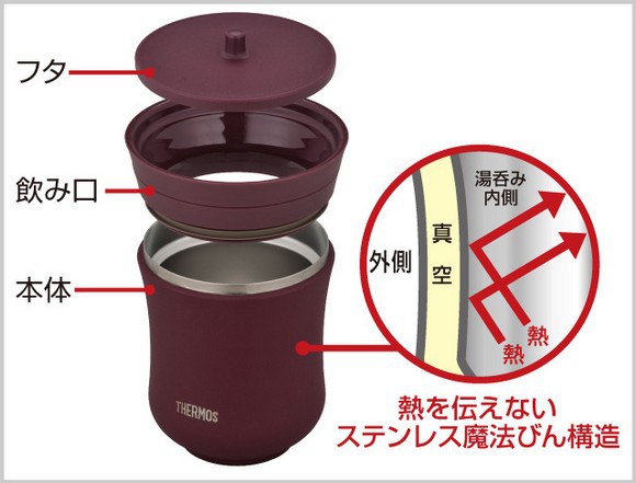 冬天出門時,有人會隨身攜帶保溫杯讓自己在寒冷的天氣隨時有熱水可飲用,這個保溫的概念由全世界最悠久也是最知名的的真空保溫杯瓶品牌-thermos膳魔師,導入日系風格的茶杯之中。