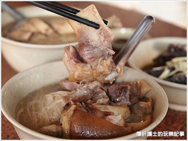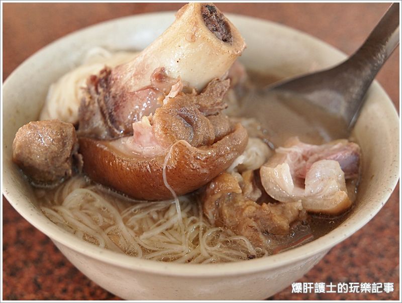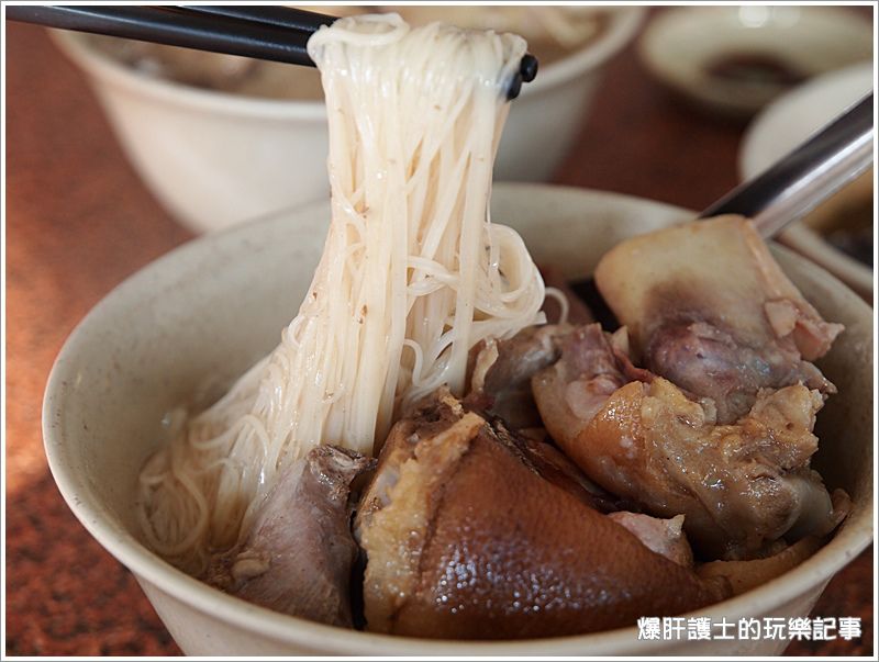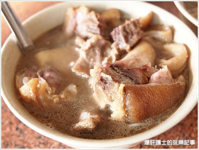 豬腳麵線來囉,豬腳是白滷的,搭配有當歸風味的湯頭,豬皮軟中帶Q滿滿的膠質,口感油而不膩,肉的部分則燉到相當的軟嫩,湯頭濃郁喝在口中有著滿滿膠質黏稠感,可見這湯頭已經燉的相當的久,喝下一口後,會忍不住一直再喝下去,難怪後頭外帶的客人會說,湯要多一點!
