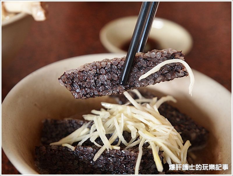這米血乾屬於比較Q黏的口感,沾上店家附的辣醬,很好吃而且還帶著微微的當歸味。