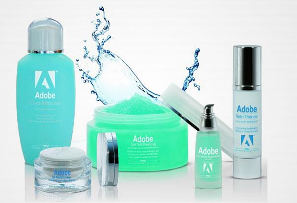 變成整套保養品的Adobe,差異又更大,連品牌代表色紅白色都消失。