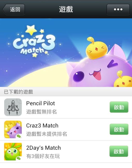 WeChat也順勢首發三款遊戲,分別為「Craz3 Match」、「2Day’s Match」、「Pencil Pilot」(本款目前僅供Andriod下載),現在進入WeChat選擇介面中的「發現」,再點選「遊戲」即可進入WeChat刺激歡樂的遊戲空間,日後WeChat也將陸續新增多款遊戲,帶來更有趣的行動娛樂體驗。