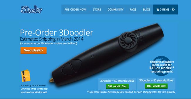 這款3Doodler 3D 列印筆其實早在2013年3月就曾經向大家介紹過概念以及開始集資準備上市,終於在CES中看見他們將於2014年3月開賣並且開放預購的消息。