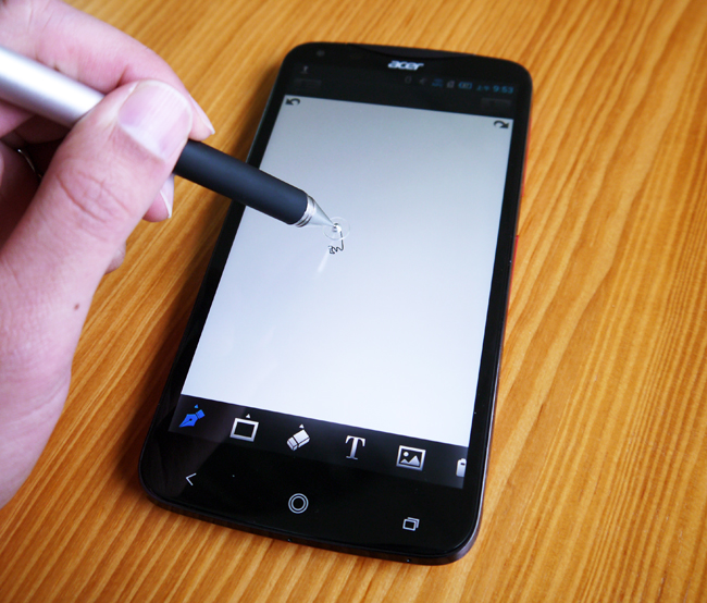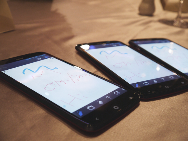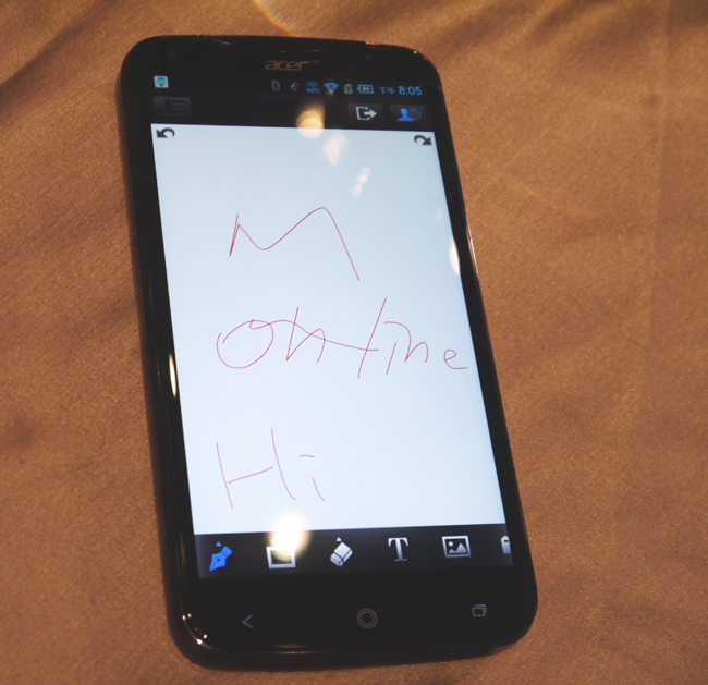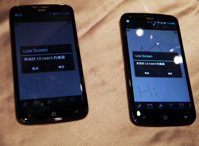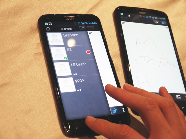 可以讓 8 個人一起來玩,透過 Wi-Fi 的串聯方式,找多台 Acer Liquid S2 就能同時在手機上使用白板分享。