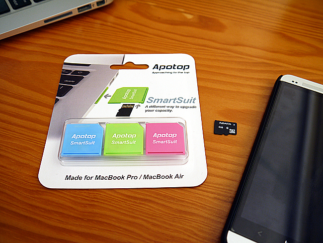 因為剛好恰爾斯用的是 Apotop SmartSuit 隨行轉卡,是專為 MacBook 做的插卡設計,比一般 SD 卡還短個 9mm,跟一般轉卡不大一樣,不會有多餘的區塊跑出來,不用把記憶卡拔下就可以將 MacBook 放進包包裡,整個方便好帶。