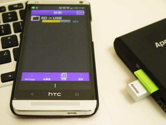 像是用手機拍照,平常把相片放在 Micro SD 裡的你要怎麼把照片存進你的電腦呢?拿回房間,把相片檔案從 Micro SD 卡讀出來之後再存在自己的隨身硬碟?真的不用這麼麻煩了啦!其實用 Wi-Copy 就可以瞬間搞定雙向 Copy 的功能,把隨身碟和 SD 卡同時安插在 Wi-Copy上,用 Wi-Copy App 操作一下,就可以簡單複製過去了。