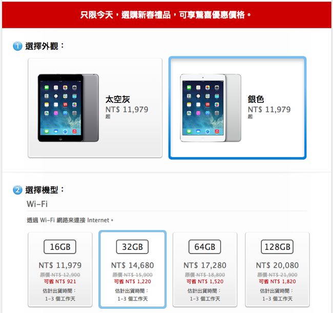 就在剛剛一過00:00,Apple 官網立即為大家端出Red Friday 所推出的特價優惠。